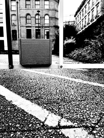 These photos were all taken by positioning a small cardboard box in different places, particularly attempting to align it with different lines I could find. The ones shown were taken in Manchester city centre, a park and around college. After taking these, using a camera, I edited them into black and white and used different features of photoshop like curves and exposure to give the images a more dramatic effect.